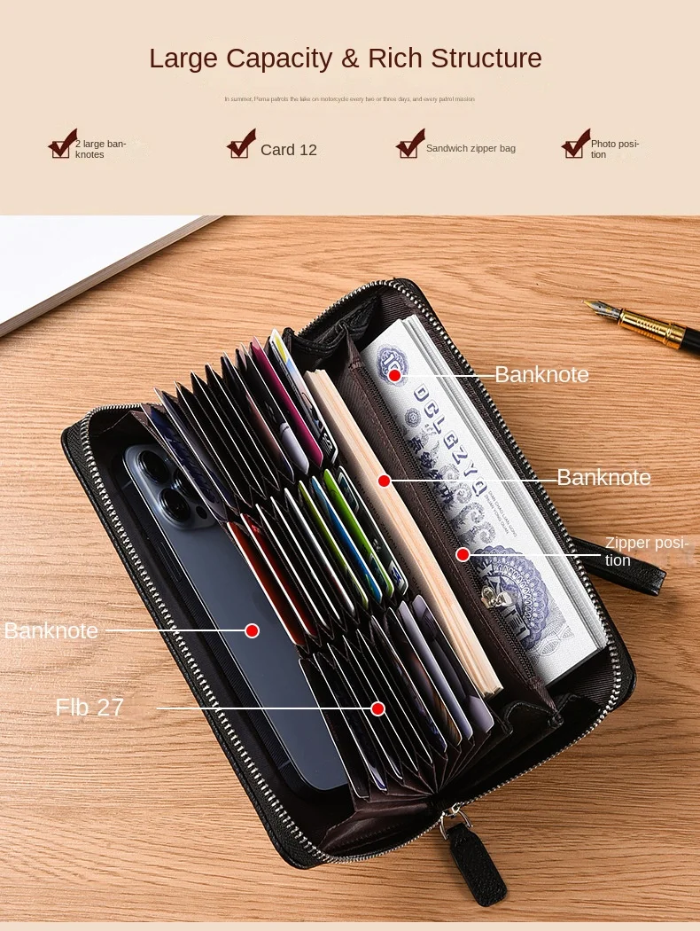 36 Slots Wallet - Split - Solid Man Purse - Business Credit Card Holder - RFID Blocking - Anti-Theft Phone Bag