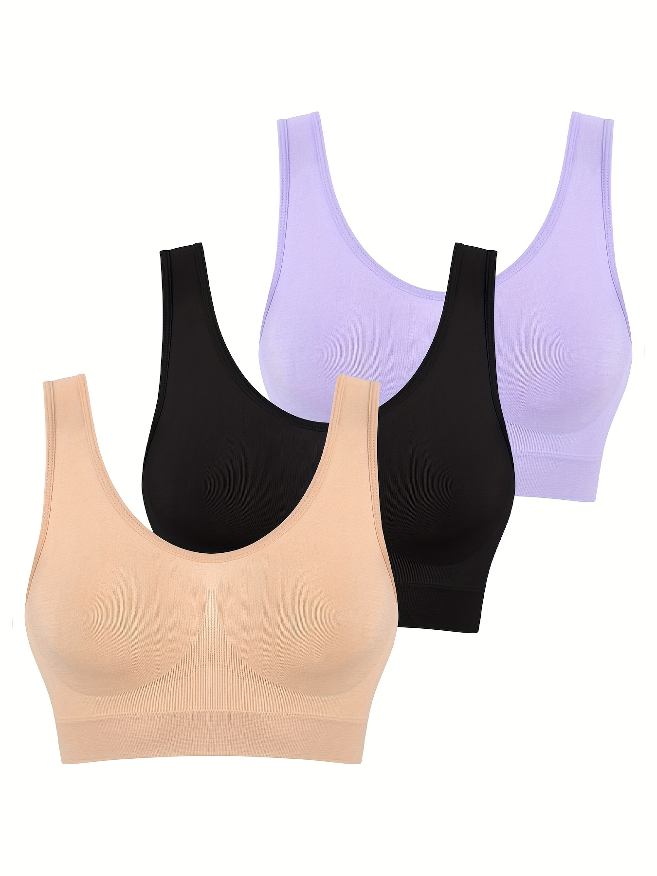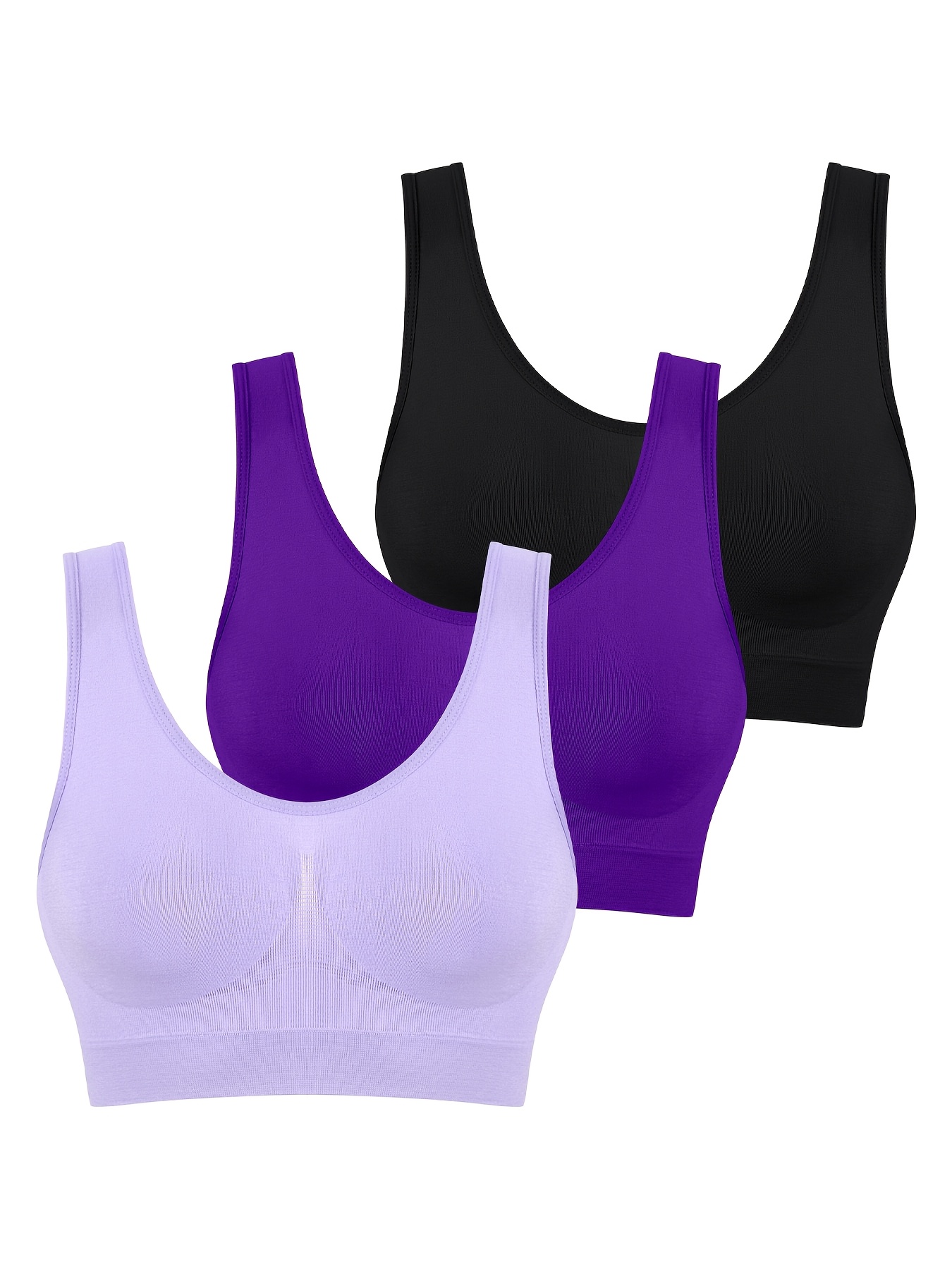 3 pcs - Women's Seamless High-Impact Sports Bras - No Padding Lightweight Breathable Mesh - High Elasticity for Gym, Yoga, Running - Elegant Special Series - Highelasticity Fabric