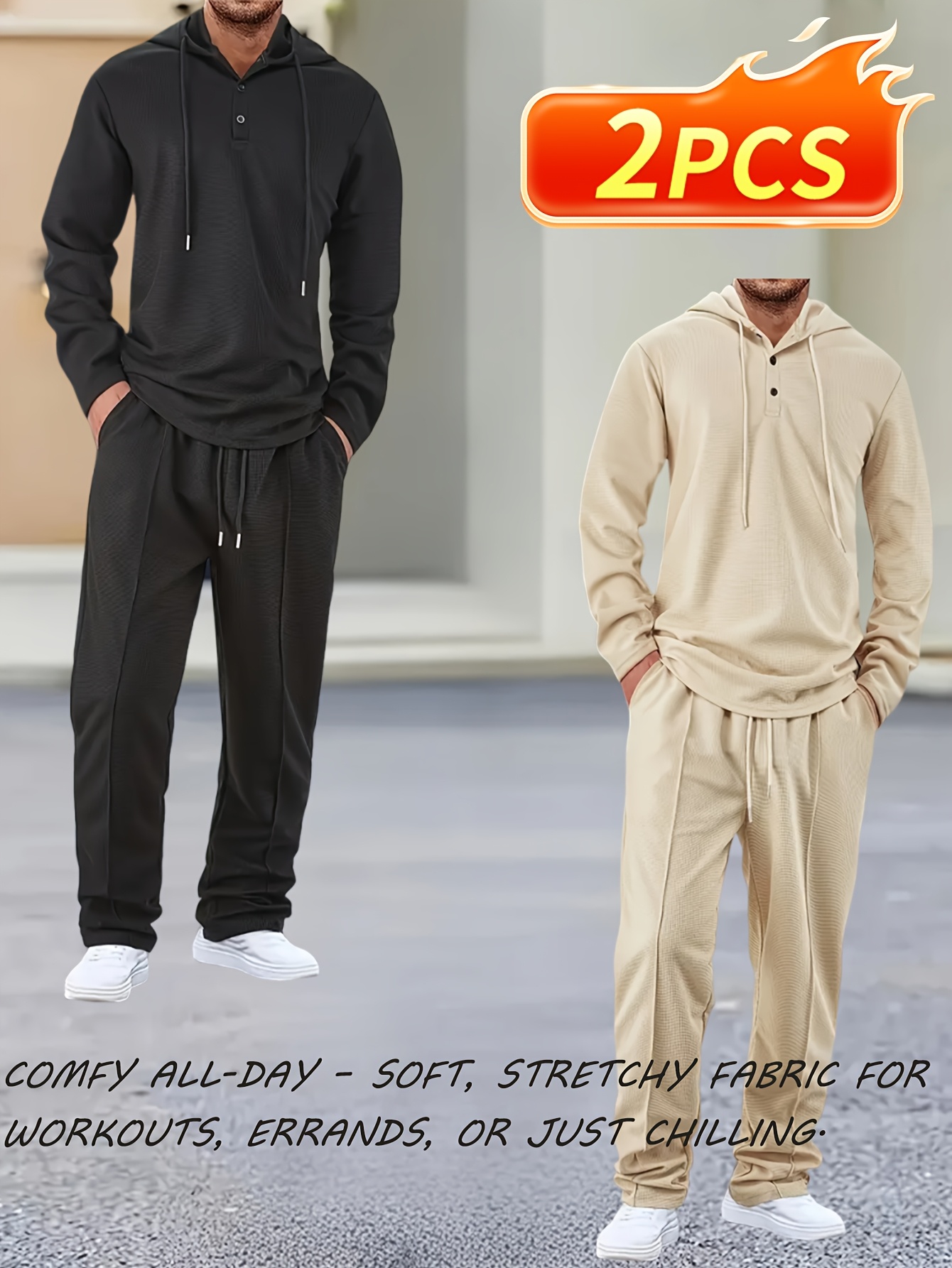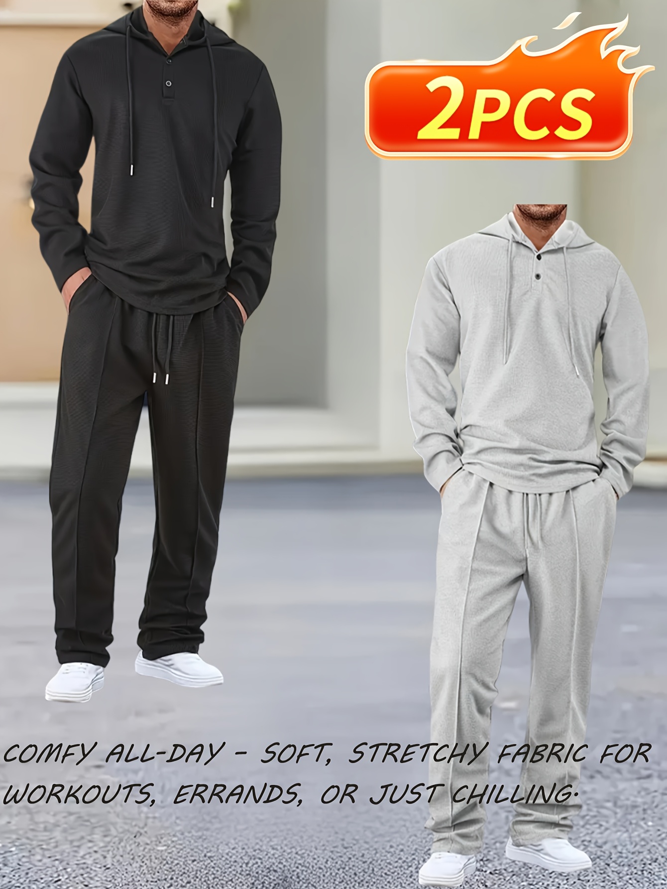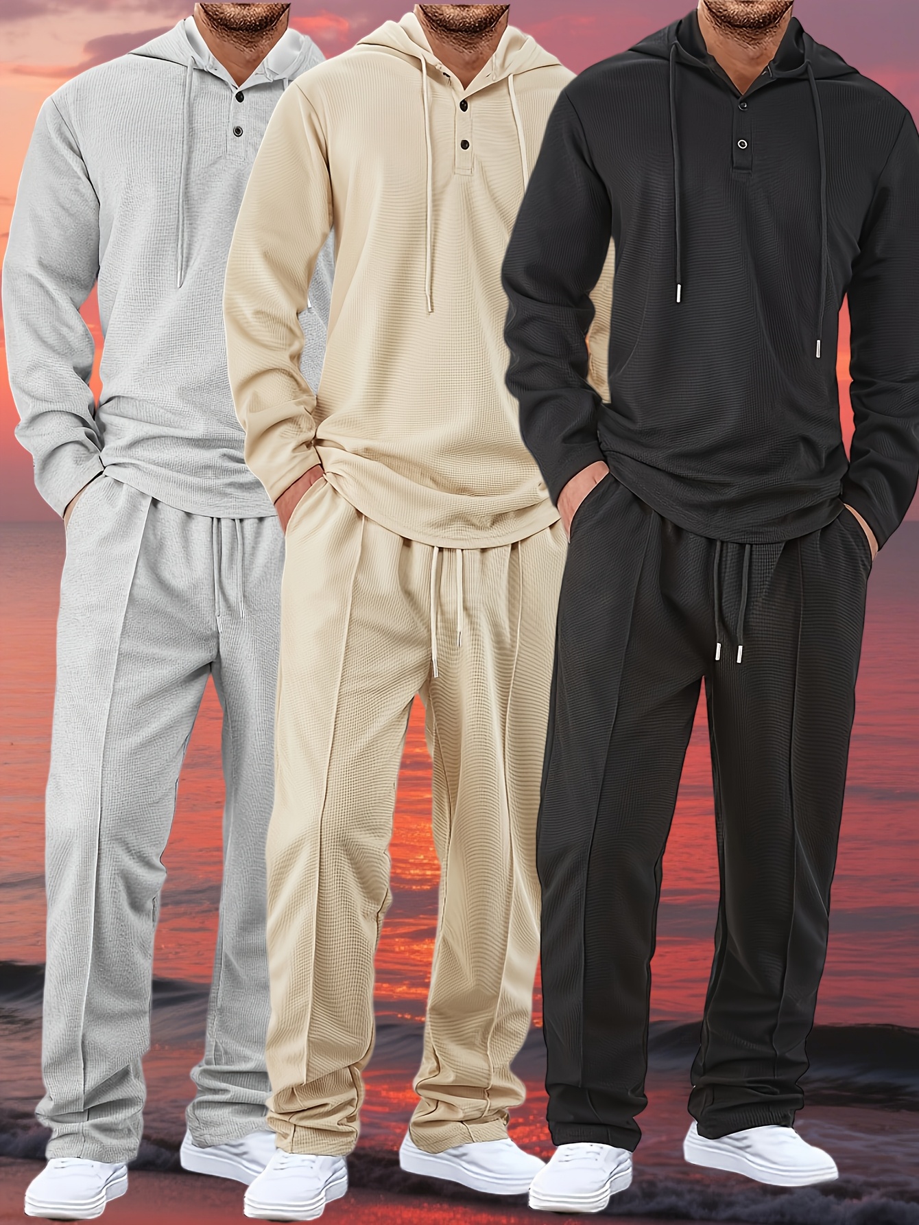 4 pcs - Long-Sleeved Casual Pants Set-- Long-Sleeved Casual Hooded Sweatshirt and Drawstring Pants - Regular Fit - Long-Sleeved Casual Set