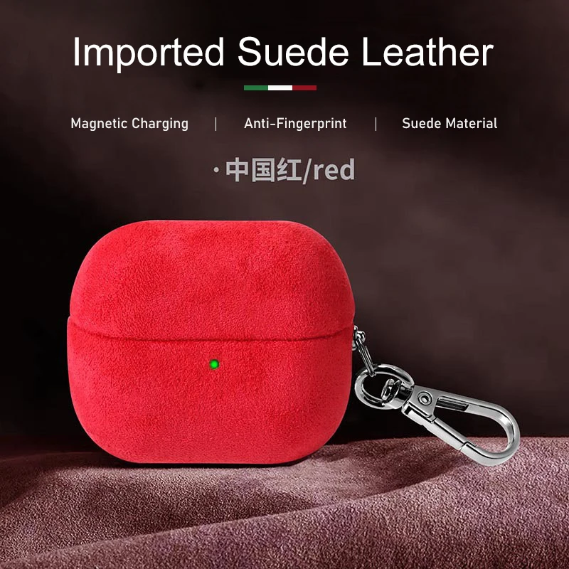 Luxury Italian Suede Leather Headphone Case for AirPods 4, 3, 2, 1 - Supercar Material - Wireless Charge Earphone Case