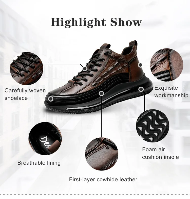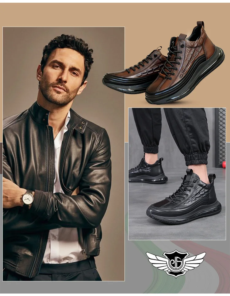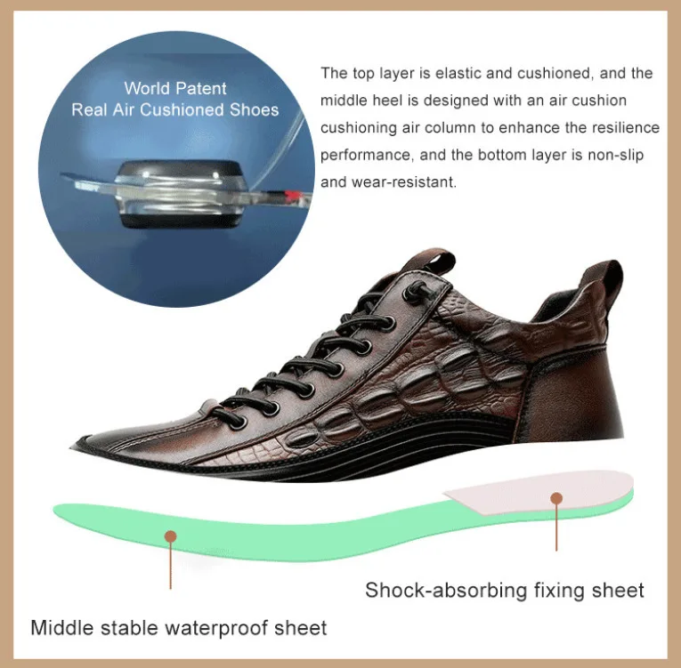 Men's Thick Air Bottom Cushion Crocodile Non-Slip Sneakers